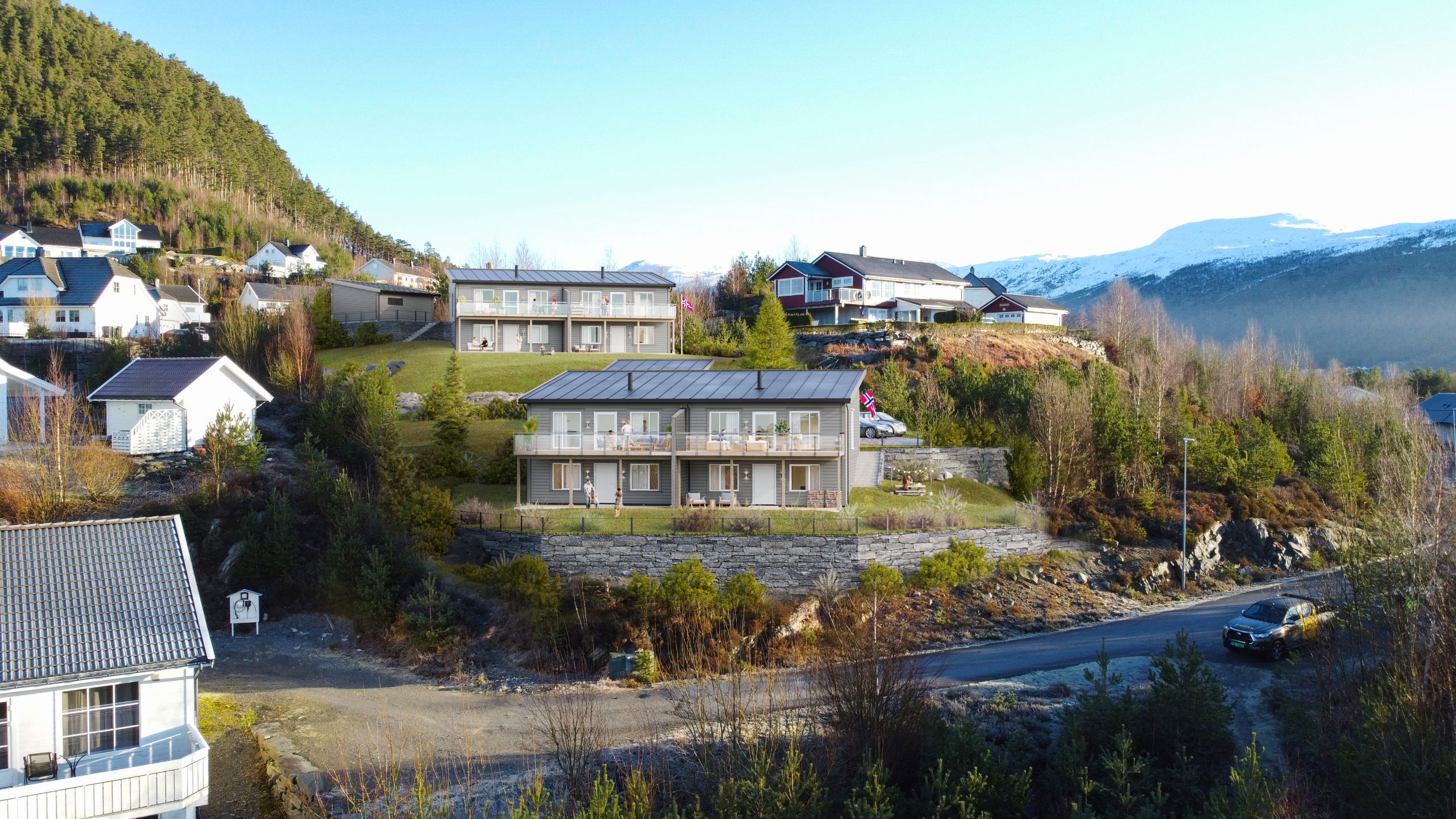 Vertikaldelt 2- mannsbustad på 2 plan; kjellarplan og hovudplan. Planlagt oppført i 2024/25. Bustaden ligg fint til i veletablert bustadområde, med kort avstand til skule, barnehage, fotball og friidrettsbane, samt kort veg til Husnes sentrum.