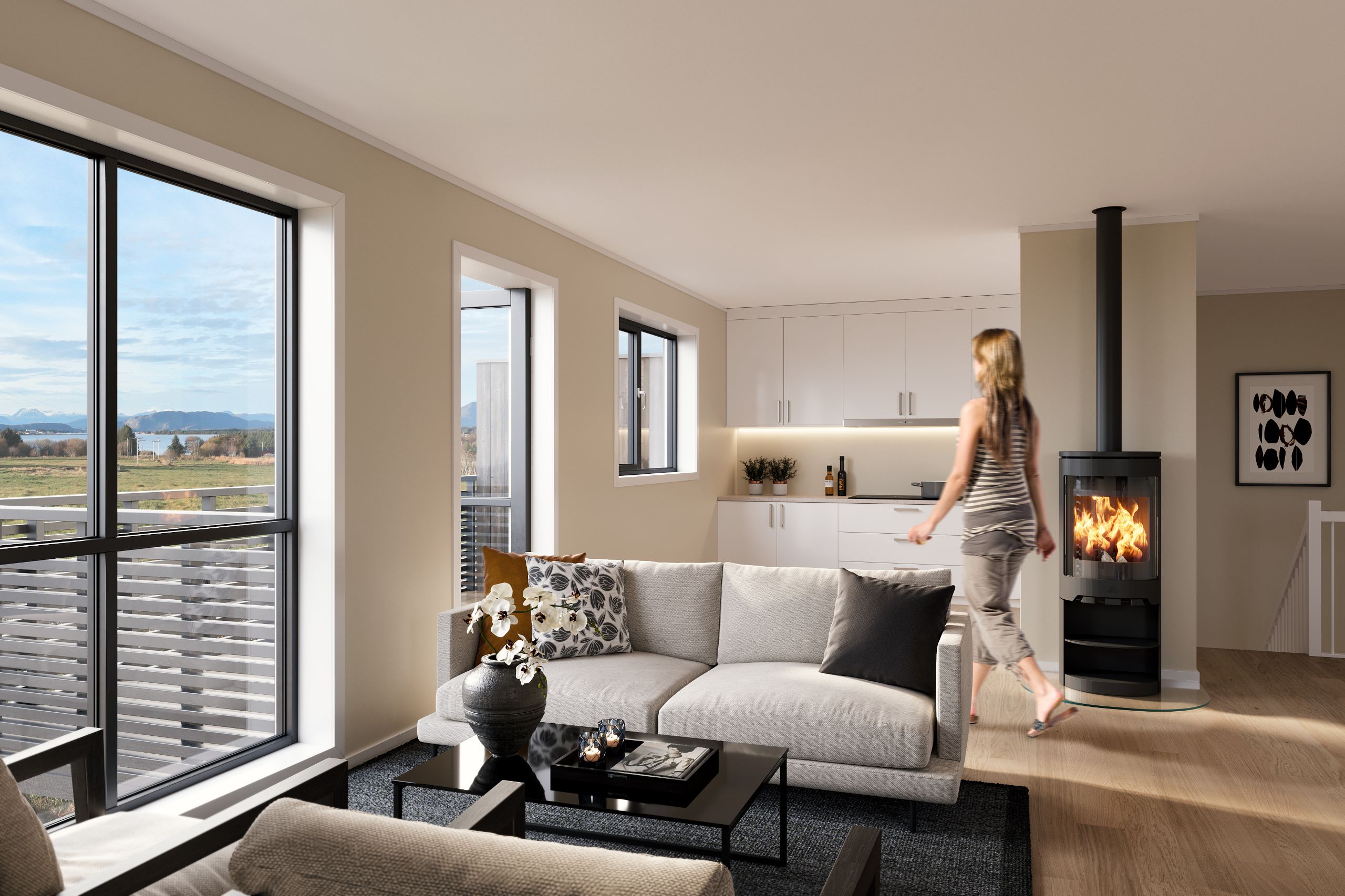 Bustaden har gjennomgåande god standard. Inneheld m.a. Gerflor Virtuo Rigid 55 klikk vinyl i alle opholdsrom. Innvendige vegger blir levert med ferdigmala plater i standard fargar.